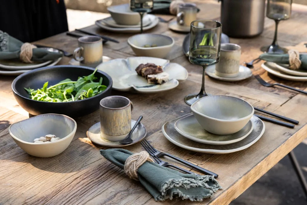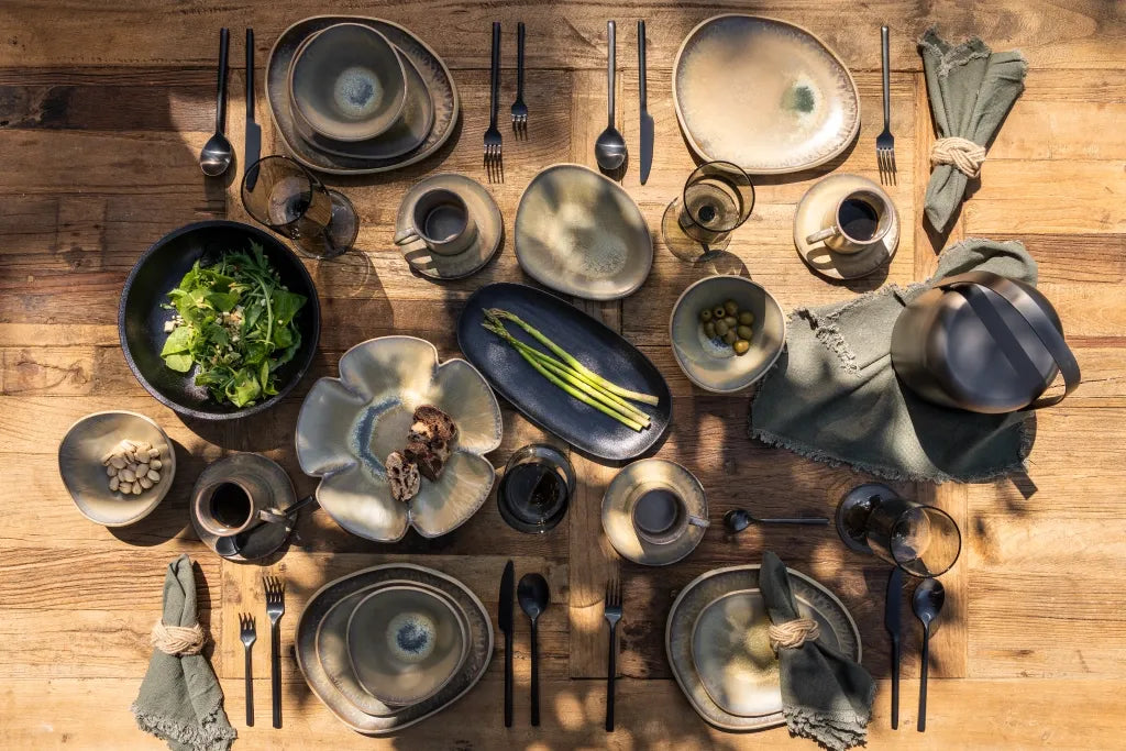 La Vajilla Oasis es una invitación a vestir tu mesa con la frescura de lo natural. Tonalidades tierra y acabados artesanales se combinan para crear un diseño atemporal que conecta con lo último en tendencia.