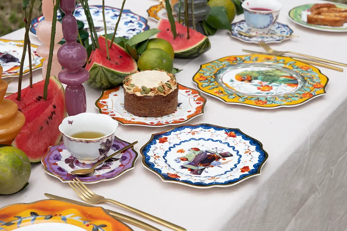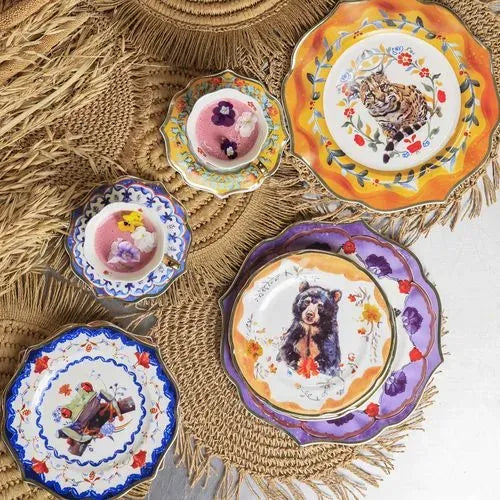 La porcelana new bone china de la vajilla Tesoro Jungla no solo aporta un acabado brillante y resistente, sino que también facilita su mantenimiento cuando se siguen las indicaciones adecuadas. Se recomienda lavar las piezas a mano para preservar los detalles de los colores y evitar daños causados por el uso de lavavajillas o microondas.