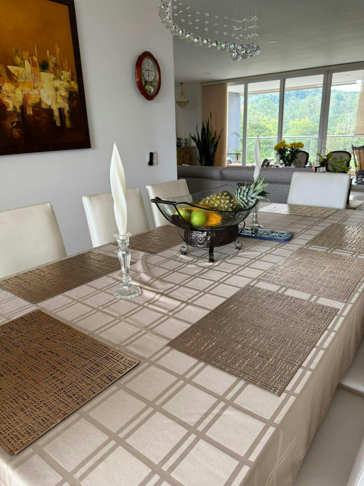 Dale un aire sofisticado a tu mesa con un accesorio en dorado metálico que refleja la luz de forma sutil. Su diseño rectangular protege contra manchas y rayones mientras realza la decoración en ocasiones especiales o uso diario. Fabricado en PVC de alta calidad, ligero y fácil de limpiar.