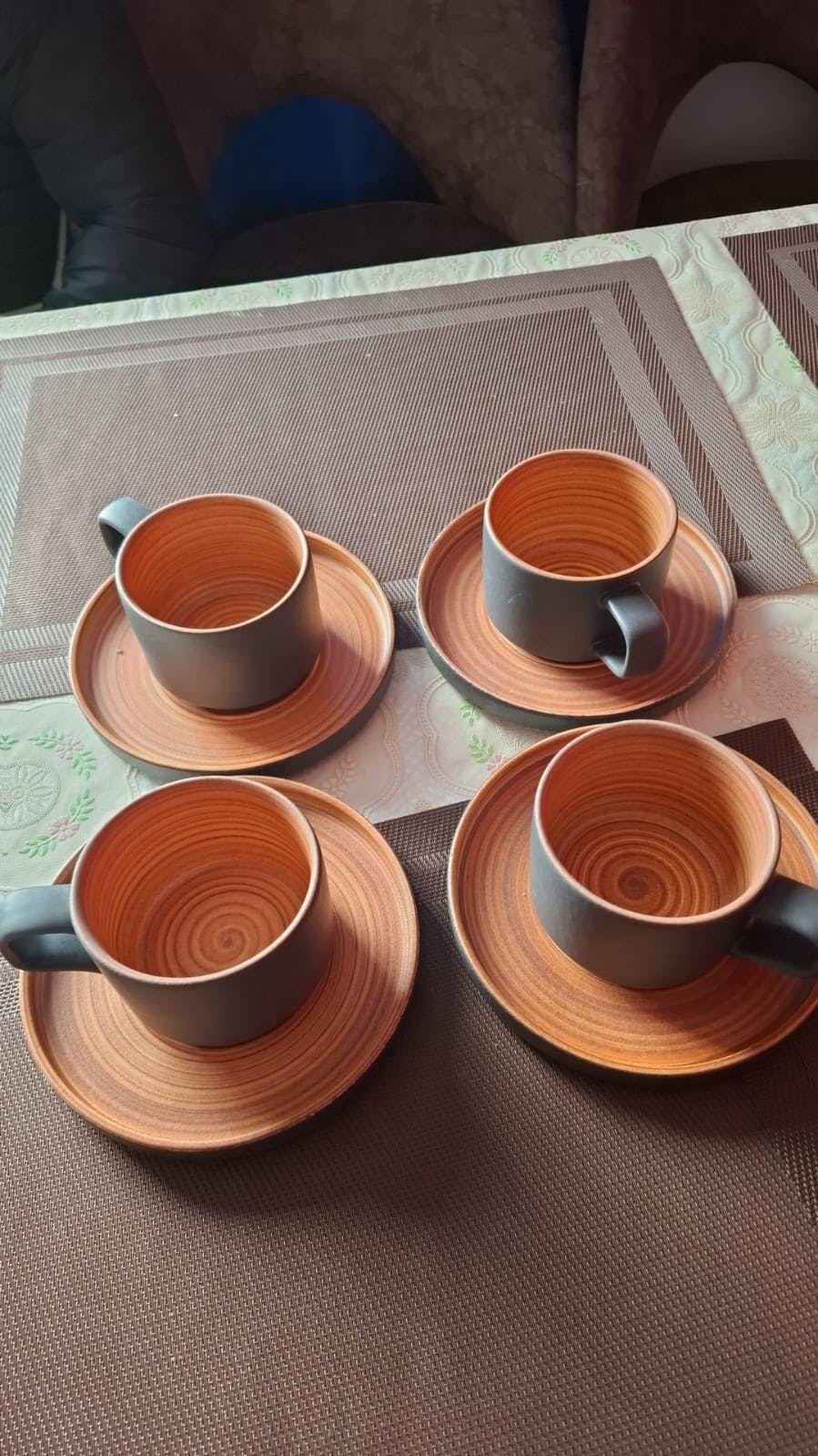 Este set de 220 ml combina tonos tierra y acabado artesanal para llevar la calidez de la naturaleza a tu mesa. Fabricado en porcelana duradera, soporta el uso diario sin perder color ni textura. Ideal para café o infusiones, es apilable y fácil de limpiar en lavavajillas.